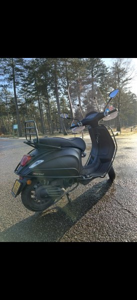 Scooter heeft schade/krassen aan de voorbeugels. En er zit inmiddels een telefoonhouder vast aan de linker kant van het stuur.
